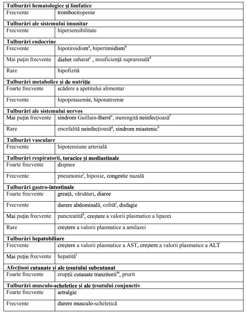 Pe baza datelor limitate provenite din studiile clinice efectuate la pacienţi ale căror reacţii adverse mediate imun nu au putut fi controlate prin corticosterapie sistemică, poate fi luată în considerare administrarea altor imunosupresoare sistemice.
